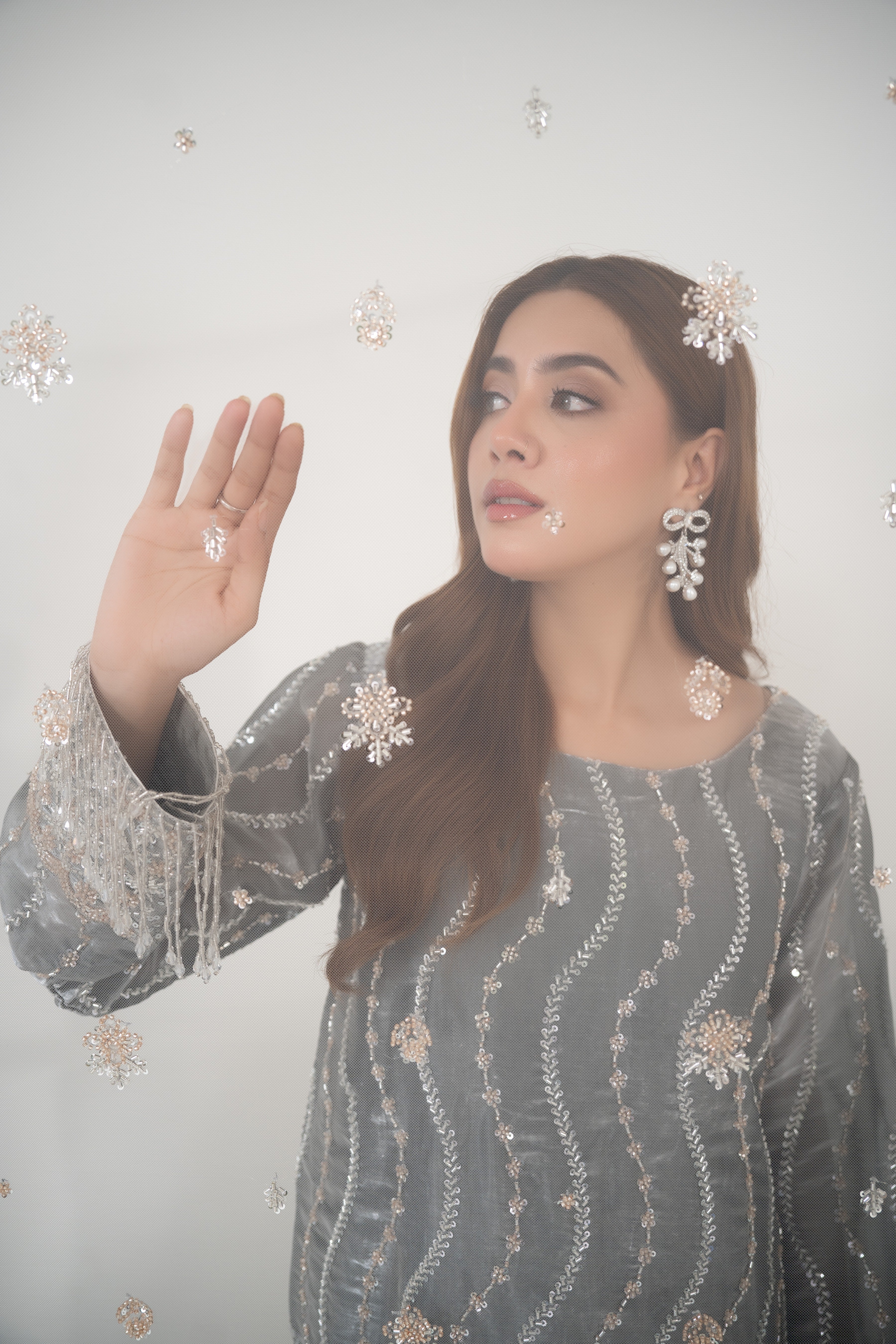 Shirt & Dupatta: Made from premium net fabric, both pieces are adorned with intricate embroidery and shimmering sequin work, exuding elegance and grace.