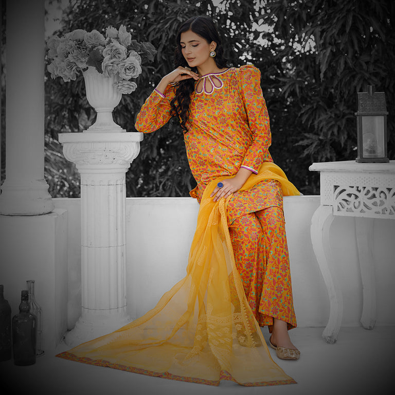 Stiched 2 Piece Lawn Suit With Delicate Embroidery